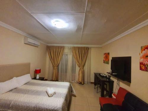 Tenacity Guesthouse - Riviera Park localiza-se em Mahikeng, a 7,4 km de Mafikeng Game Reserve, e fornece acomodações com acesso Wi-Fi gratuito e estacionamento privado gratuito. O alojamento situa-se a 8 km de Mmabatho Olympic Stadium, a 9,3 km de Mmabatho Convention Centre e a 11 km de Leopard Creek Golf Course. O alojamento apresenta quartos familiares.