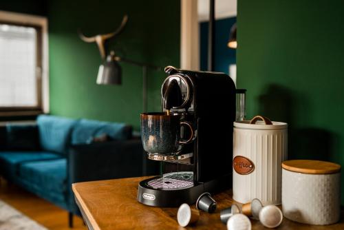 Este apartamento tem 1 quarto, uma sala de estar, uma cozinha totalmente equipada com frigorífico e máquina de café, e 1 casa de banho com chuveiro e produtos de higiene pessoal gratuitos. Toalhas e roupa de cama são providenciadas neste apartamento.