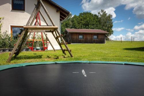 Em Waldmünchen, apenas a 21 km de Drachenhöhle Museum, Komfortables Ferienhaus im Bayerischen Wald am Alpakahof mit Saunahaus fornece acomodações com um terraço e acesso Wi-Fi gratuito.