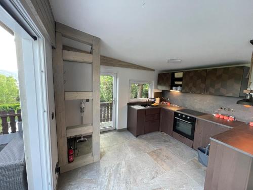 Esta casa de férias com um terraço e vista da montanha tem 1 quarto, uma sala de estar, uma televisão de ecrã plano, uma cozinha equipada com frigorífico e máquina de lavar louça, e 1 casa de banho com chuveiro. Para maior comodidade, o alojamento pode fornecer toalhas e roupa de cama por um custo extra.