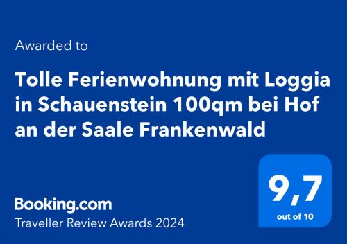 Tolle Ferienwohnung mit Loggia in Schauenstein 100qm bei Hof an der Saale Frankenwald Am Goldberg 8, Schauenstein 98 100 42 Total 98% De 100%