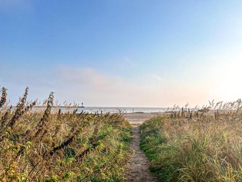 Strandblick - Dorf 1 Ferienhaus 08, um alojamento com um jardim e um terraço, encontra-se em Priwall, a 12 minutos a pé de Praia de Rosenhagen, 1,1 km de Praia Travemunde e a 43 km de Teatro Hanseático de Wismar. O alojamento com ar condicionado está a 1 minutos a pé de Praia de Priwall, e os hóspedes beneficiam de estacionamento privado disponível no local e acesso Wi-Fi gratuito.