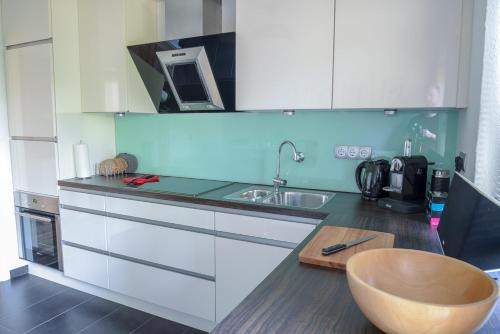 Este apartamento tem 2 quartos, uma sala de estar, uma cozinha totalmente equipada com frigorífico e máquina de café, e 1 casa de banho com chuveiro e produtos de higiene pessoal gratuitos. Toalhas e roupa de cama são providenciadas neste apartamento.