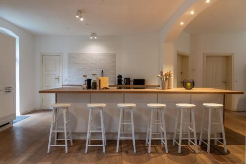 Esta villa tem 8 quartos, uma sala de estar, uma cozinha totalmente equipada com frigorífico e máquina de café, e 2 casas de banho com banheira e um secador de cabelo. Toalhas e roupa de cama são providenciadas nesta villa.