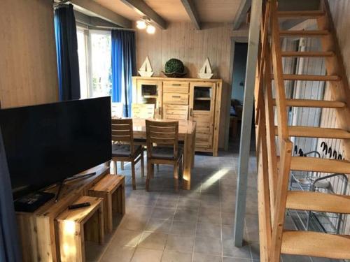 Esta casa de férias tem 2 quartos, uma televisão e uma cozinha totalmente equipada com frigorífico, máquina de lavar louça, máquina de lavar roupa, forno e micro-ondas