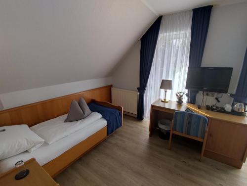 Os quartos do Hotel Zum Märchenwald Lingen apresentam uma decoração de estilo rural clássico com mobiliário em madeira. Cada quarto inclui uma televisão de ecrã plano, uma área de estar e uma casa de banho privativa.