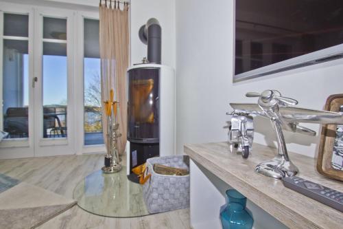Fornecendo uma varanda com vista do mar, este apartamento também disponibiliza uma televisão, uma cozinha equipada com um frigorífico, uma máquina de lavar louça e um forno, assim como 2 casas de banho com chuveiro e um secador de cabelo.