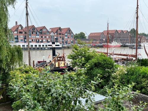 Hafenblick Appartement situa-se em Leer, a 38 km de Winschoten Station e a 38 km de Amrumbank lightship, e dispõe de acomodações com acesso Wi-Fi gratuito, um jardim com um terraço e vista do rio.