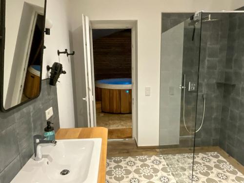 Apresentando uma banheira de hidromassagem, Ferienwohnung „Klüterkamer“ - Hof Mühlenkoppel localiza-se em Hasselberg. O alojamento apresenta uma piscina privada, jardim, comodidades para churrascos, acesso Wi-Fi gratuito e estacionamento privado gratuito.