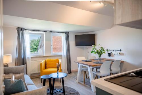 Strandperle Appartements encontra-se em Hasselberg, na região de Schleswig Holstein, a 15 minutos a pé de Praia de Kronsgaard, e apresenta acomodações com acesso Wi-Fi gratuito, um parque infantil, um jardim e estacionamento privado gratuito.