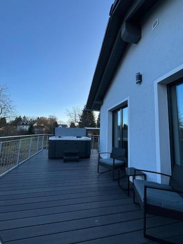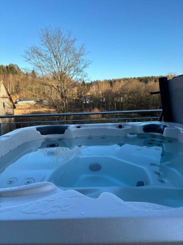 A 30 km de Oberfrankenhalle Bayreuth, Ferienhaus H-Auszeit fornece acomodações com banheira de hidromassagem em Fichtelberg. Situado a 30 km de Estação Central de Bayreuth, o alojamento dispõe de um jardim e estacionamento privado gratuito.