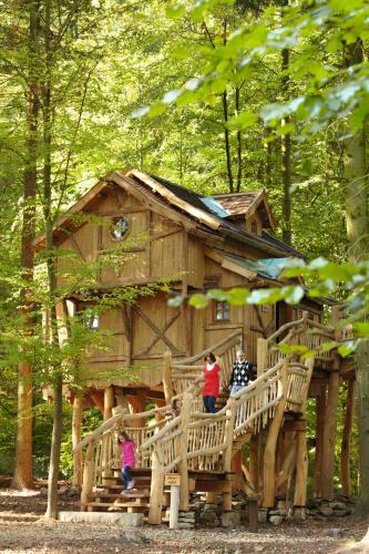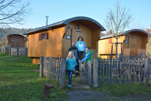 O Erlebnispark Tripsdrill Natur-Resort proporciona uma estadia única em caravanas de madeira que apresentam um estilo de vagões e casas de árvore. A acomodação aquecida tem uma área de estar exterior com vista para os arredores da Suábia e para a Montanha Michaelsberg.