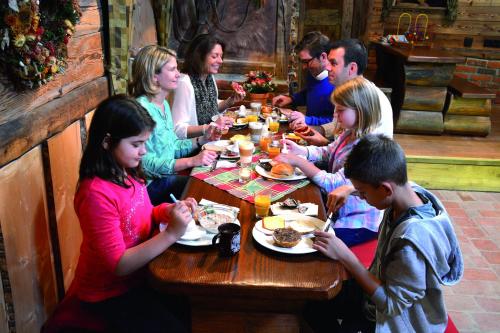 Um pequeno-almoço é servido diariamente e o restaurante de estilo alpino também está aberto aos sábados, domingos e férias escolares. Existem comodidades para churrascos e o Altweibermühle Inn está localizado no parque de aventura.