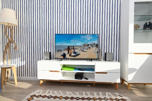 Este apartamento tem 1 quarto, uma sala de estar, uma cozinha totalmente equipada com frigorífico e chaleira, e 1 casa de banho com chuveiro e um secador de cabelo.