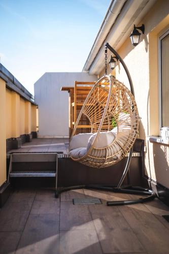 Este apartamento com um terraço e vista da cidade tem 1 quarto, uma sala de estar, uma televisão de ecrã plano, uma cozinha equipada com frigorífico e máquina de lavar louça, e 2 casas de banho com chuveiro. Toalhas e roupa de cama são providenciadas neste apartamento.