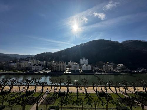 Apresentando vista do rio, Apartment am Kurpark mit traumhafter Terrasse apresenta acomodações com varanda e máquina de café, a cerca de 18 km de Palácio Eleitoral de Koblenz. O alojamento apresenta um restaurante, um casino, vistas da montanha e acesso Wi-Fi gratuito em toda a propriedade.