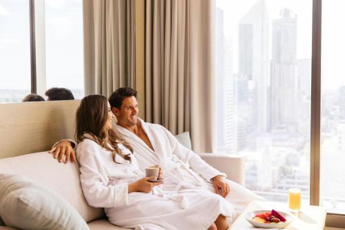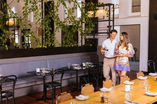 O restaurante exclusivo do hotel, o Garum, do icónico chef australiano Guy Grossi, faz parte do edifício classificado Hibernian Hall e propõe refeições durante todo o dia, enquanto o The Haven Lounge & Bar serve refeições ligeiras e high teas (lanches ajantarados) exclusivos. O piso de bem-estar inclui um spa luxuoso, um centro de fitness 24 horas e uma piscina de beiral infinito de 20 metros. O espaço para eventos com 2 300 m² é ideal para reuniões e conferências, incluindo um salão de festa amplo de 800 m².