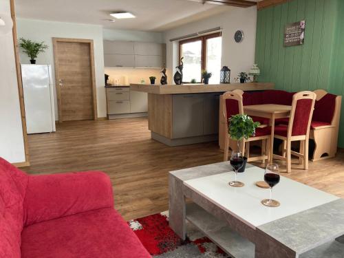 O alojamento disponibiliza varanda com vista da montanha aos hóspedes, assim como uma área de estar, uma televisão de ecrã plano por satélite, uma cozinha totalmente equipada com um frigorífico e uma máquina de lavar louça, e uma casa de banho privativa com chuveiro e um secador de cabelo. Um forno, uma placa de fogão e torradeira também estão disponíveis, assim como máquina de café e chaleira.