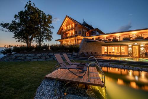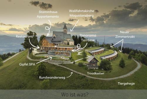 Gipfelhaus Magdalensberg localiza-se em Sankt Veit an der Glan, a 18 km de Castelo de Krastowitz, e fornece acomodações com um jardim, estacionamento privado gratuito, um terraço e um restaurante. Este hotel de 4 estrelas dispõe de serviço de quartos, um balcão de turismo e acesso Wi-Fi gratuito. Os hóspedes podem usar o spa e centro de bem-estar com sauna, banheira de hidromassagem e um bar.