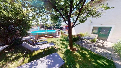 Apresentando um jardim, terraço, bar e acesso Wi-Fi gratuito, Weingut Bohrn Himmelbett localiza-se em Herrnbaumgarten, a 9 km de Castelo de Valtice e 17 km de Castelo de Lednice. Apresentando serviço de quartos, este alojamento também dispõe de parque infantil. Este alojamento não fumador situa-se a 7,6 km de Colonnade na Reistně.