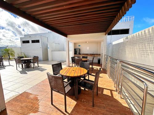 Condomínio Maceió Facílities 300m Cadeira Ponta Verde 2 Quartos 7 camas apresenta um terraço para banhos de sol.