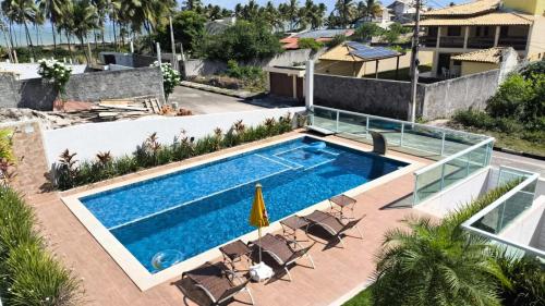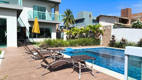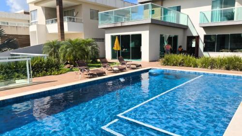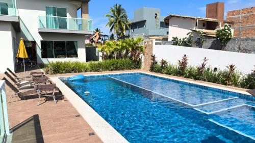 Apresentando um terraço com vista do jardim, uma piscina exterior e um bar, Barra de Jacuípe - Condomínio Parque Jacuípe -Mansão Caldeira encontra-se em Camaçari, perto de Jacuipe Beach e a 19 km de Castelo Garcia D'avila. O alojamento apresenta uma piscina privada, jardim, comodidades para churrascos, acesso Wi-Fi gratuito e estacionamento privado gratuito.