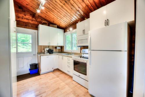 Chalets des pins localiza-se a 34 km de Regional Park Chutes-Monte-a-Peine et des Dalles e dispõe de um jardim, uma área de praia privada e acomodações com ar condicionado, varanda e acesso Wi-Fi gratuito.
