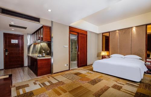 Alguns quartos do Foshan Crowne Plaza apresentam mobiliário chinês moderno. Todos os quartos estão equipados com uma televisão por cabo, um minibar e um cofre. É disponibilizado um serviço de quartos 24 horas por dia.