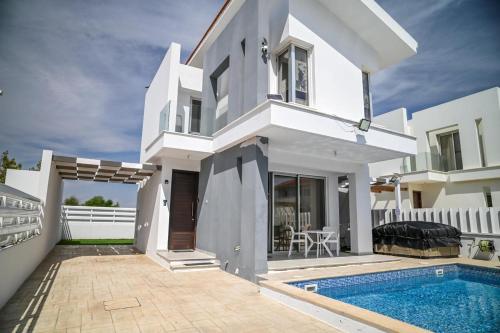 Apresentando uma piscina exterior, um jardim e uma área de praia privada, Hi royal villa fornece acomodações em Perivolia com acesso Wi-Fi gratuito e vista da piscina. O alojamento apresenta acomodações com ar condicionado e uma varanda.