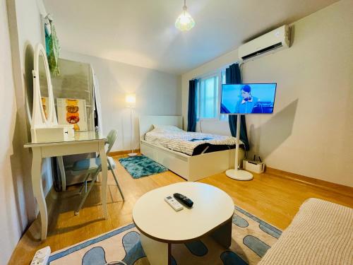 It's So Blue Studio Apartment in Sinchon situa-se em Seul, a 15 minutos a pé de Universidade de Mulheres Ewha e 1,7 km de Estação de Metro da Universidade de Hongik, e dispõe de acesso Wi-Fi gratuito e ar condicionado. O alojamento apresenta vista da cidade e está a 2,2 km de Universidade de Hongik e 3,6 km de Estação Ferroviária de Seul.