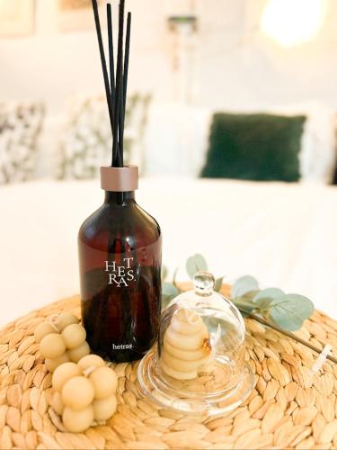 Este apartamento com ar condicionado dispõe de 1 quarto, uma televisão de ecrã plano, uma área de refeições e uma cozinha com frigorífico e micro-ondas.