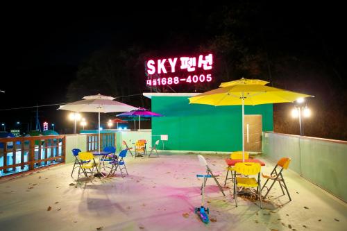Sky Vivaldi Pension localiza-se a 5,6 km de Vivaldi Park Ocean World e dispõe de um jardim, um terraço e acomodações com ar condicionado, varanda e acesso Wi-Fi gratuito.