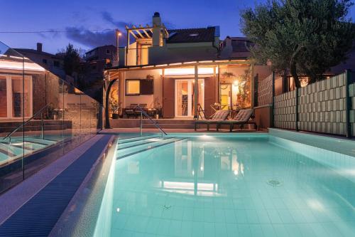 Apresentando uma piscina exterior, um jardim e um terraço, NORMABEL relaxing villa with heated pool and sauna dispõe de acomodações em Žrnovnica com acesso Wi-Fi gratuito e vista da montanha. Apresentando estacionamento privado gratuito, esta villa está numa área onde os hóspedes podem desfrutar de atividades como caminhadas, mergulho com snorkel e ciclismo.