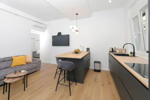 Este apartamento com ar condicionado tem 1 quarto, uma sala de estar, uma cozinha totalmente equipada com frigorífico e máquina de café, e 1 casa de banho com chuveiro e produtos de higiene pessoal gratuitos. Toalhas e roupa de cama são providenciadas neste apartamento.