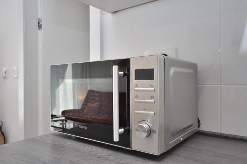 Este apartamento com ar condicionado tem 2 quartos, uma sala de estar, uma cozinha totalmente equipada com frigorífico e máquina de café, e 2 casas de banho com banheira e produtos de higiene pessoal gratuitos. Toalhas e roupa de cama são providenciadas neste apartamento.