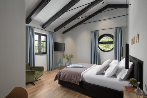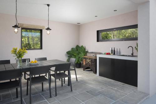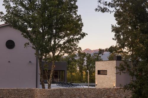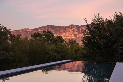 Em Kršan, a 49 km de Basílica de Santa Eufémia em Rovinj e 22 km de Castelo de Pazin, Villa Mons Caldera for 10 people with 40 m2 infinity heated pool & kids playground fornece acomodações com ar condicionado, pátio e acesso Wi-Fi gratuito. O alojamento apresenta uma piscina privada, jardim e estacionamento privado gratuito.