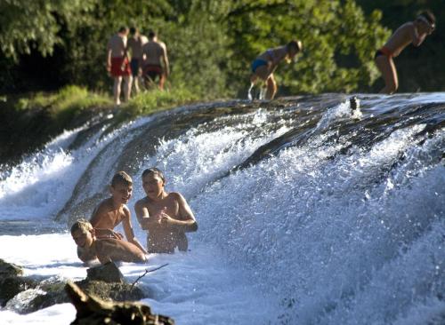 The Candy Bar offers diverse cookies and cakes and the Aperitif Bar Kis is a great place for morning coffee, an afternoon tea as well as fancy cocktails. The summer terrace with dance music and the sound of the Korana waterfall is a place not to be missed.