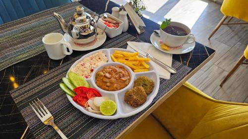 Cozy beachfront apartment in Al Ahyaa suitable for a family with children disponibiliza pequeno-almoço à carta ou continental.