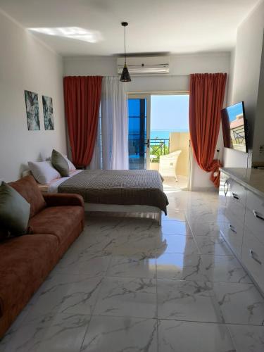 Apresentando vista do mar, Terracotta studio with amazing beach and sea view dispõe de acomodações com uma piscina exterior, uma área de praia privada e um restaurante, a cerca de 14 km de Nova Marina. Este alojamento em frente à praia dispõe de uma varanda e estacionamento privado gratuito.