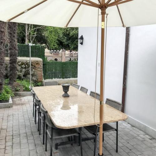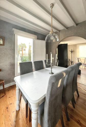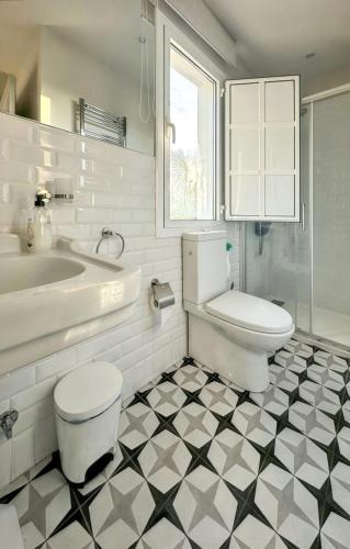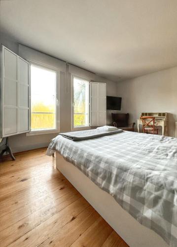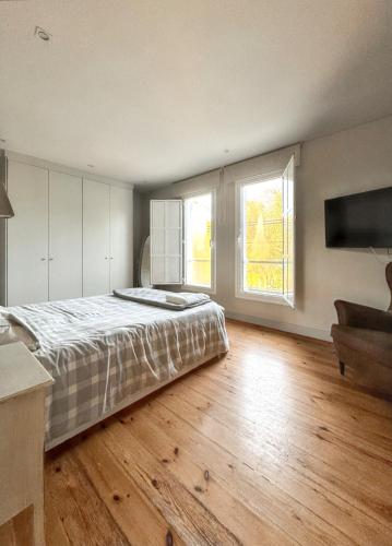 Esta casa de férias com ar condicionado tem 6 quartos, uma televisão por satélite e uma cozinha com frigorífico e máquina de lavar louça.