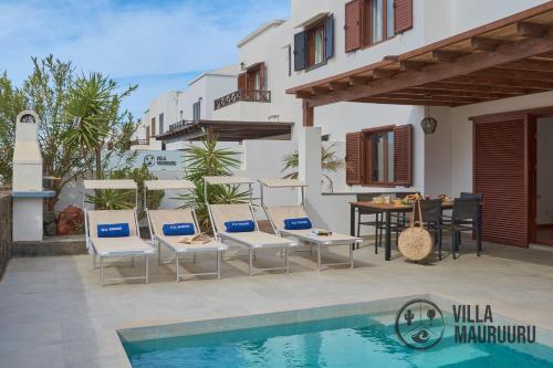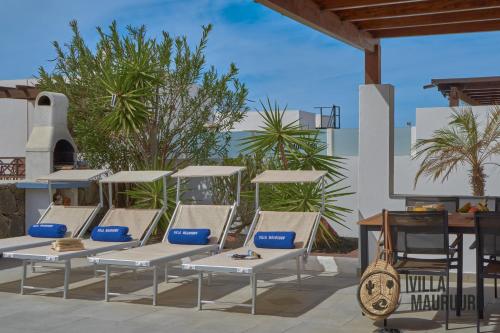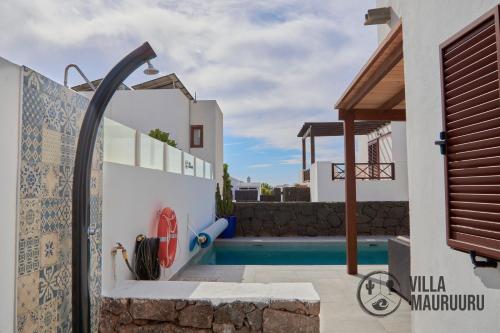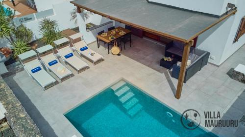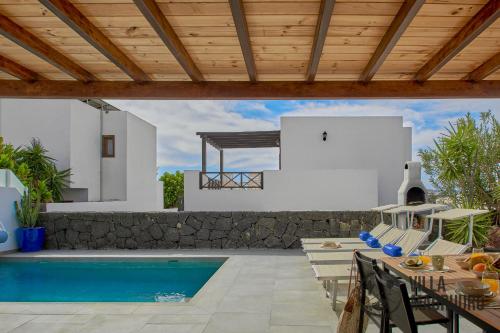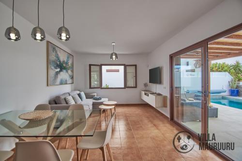 Apresentando uma piscina exterior, um jardim e um terraço, VILLA MAURUURU - 10 minutes walking to Marina Rubicón, heated pool, BBQ & office space with desk and high speed internet fornece acomodações em Playa Blanca com acesso Wi-Fi gratuito e vista da piscina. Este alojamento dispõe de uma piscina privada e estacionamento privado gratuito.