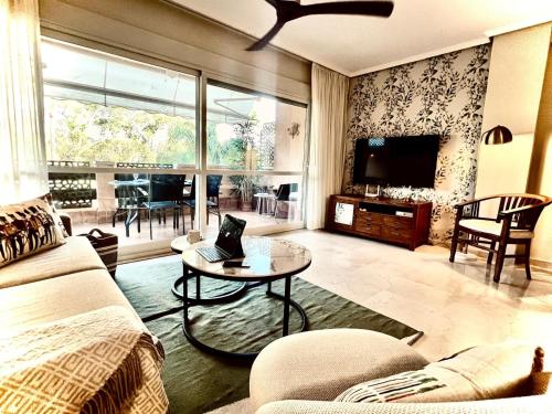 Apresentando uma piscina exterior sazonal, um terraço e um campo de ténis, Apartamento Sol y Dunas Beach dispõe de acomodações em Marbella com acesso Wi-Fi gratuito e vista do jardim. O alojamento apresenta uma piscina privada, jardim e estacionamento privado gratuito.