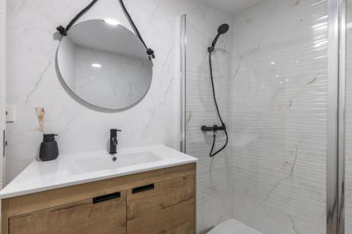 Este apartamento com ar condicionado tem 2 quartos, uma sala de estar, uma cozinha totalmente equipada com frigorífico e máquina de café, e 2 casas de banho com chuveiro e produtos de higiene pessoal gratuitos. Toalhas e roupa de cama são providenciadas neste apartamento.
