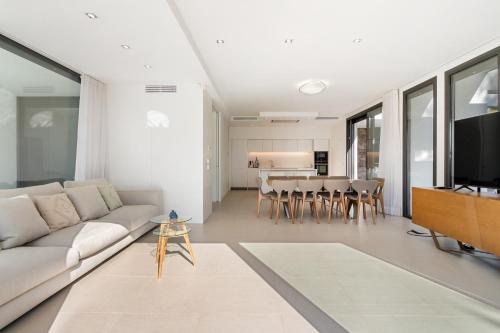 Esta villa com ar condicionado tem 4 quartos, uma sala de estar, uma cozinha totalmente equipada com frigorífico e máquina de café, e 4 casas de banho com chuveiro e um secador de cabelo. Toalhas e roupa de cama são providenciadas nesta villa.