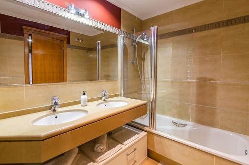 Este apartamento com ar condicionado tem 2 quartos, uma sala de estar, uma cozinha totalmente equipada com frigorífico e máquina de café, e 2 casas de banho com bidé e chuveiro. Toalhas e roupa de cama são providenciadas neste apartamento.