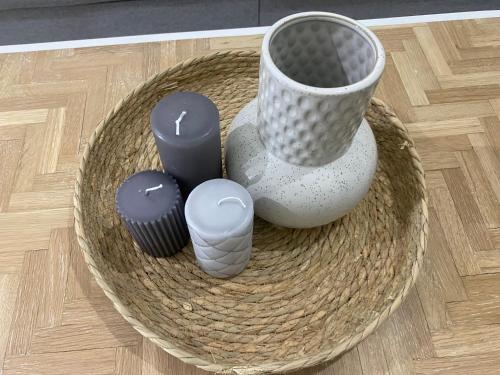Este apartamento com ar condicionado tem 3 quartos, 1 casa de banho com um secador de cabelo, uma área de estar e uma sala de estar. Há uma área de refeições e cozinha equipada com um micro-ondas.