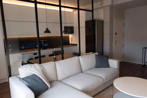 Este apartamento dispõe de 2 quartos, uma cozinha com frigorífico e máquina de lavar louça, e 2 casas de banho com chuveiro, um secador de cabelo e máquina de lavar roupa. Toalhas e roupa de cama são providenciadas neste apartamento.
