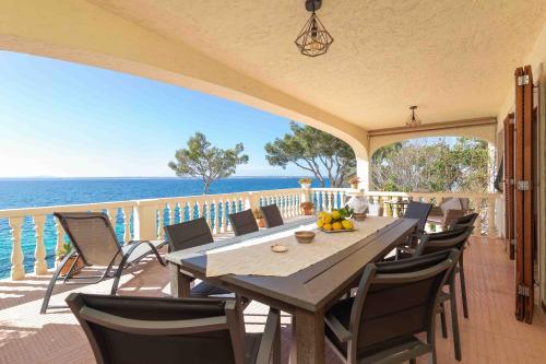 Esta villa tem 6 quartos, 4 casas de banho, roupa de cama, toalhas, uma televisão de ecrã plano com canais por satélite, área de refeições, uma cozinha totalmente equipada e terraço com vista do mar.