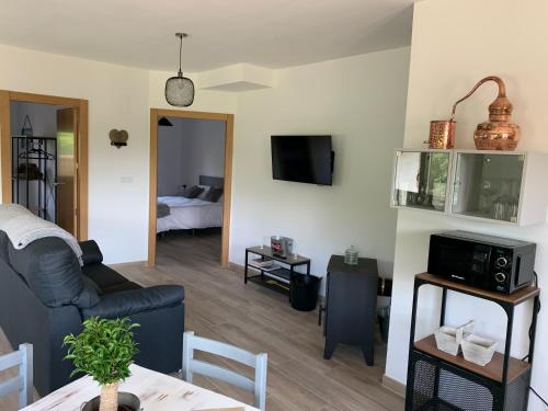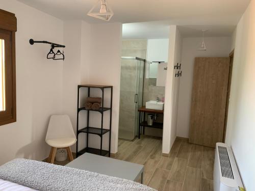O alojamento está equipado ar condicionado e possui uma cozinha com área de refeições, uma televisão de ecrã plano e uma casa de banho privativa com chuveiro e um secador de cabelo. Um frigorífico, um forno e micro-ondas estão disponíveis, assim como uma máquina de café.