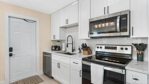 A cerca de 15 minutos a pé de Seacrest Beach e 15 km de United States Coast Guard Station Port Canaveral Wharf, The Shark Tank Cocoa Beach - Beach Boho, Downtown, 5-Min Walk to Beach, Shops & Bars dispõe de acesso Wi-Fi gratuito e um terraço. Situado a 3 minutos a pé de Cocoa Beach, o alojamento apresenta um jardim e estacionamento privado gratuito.